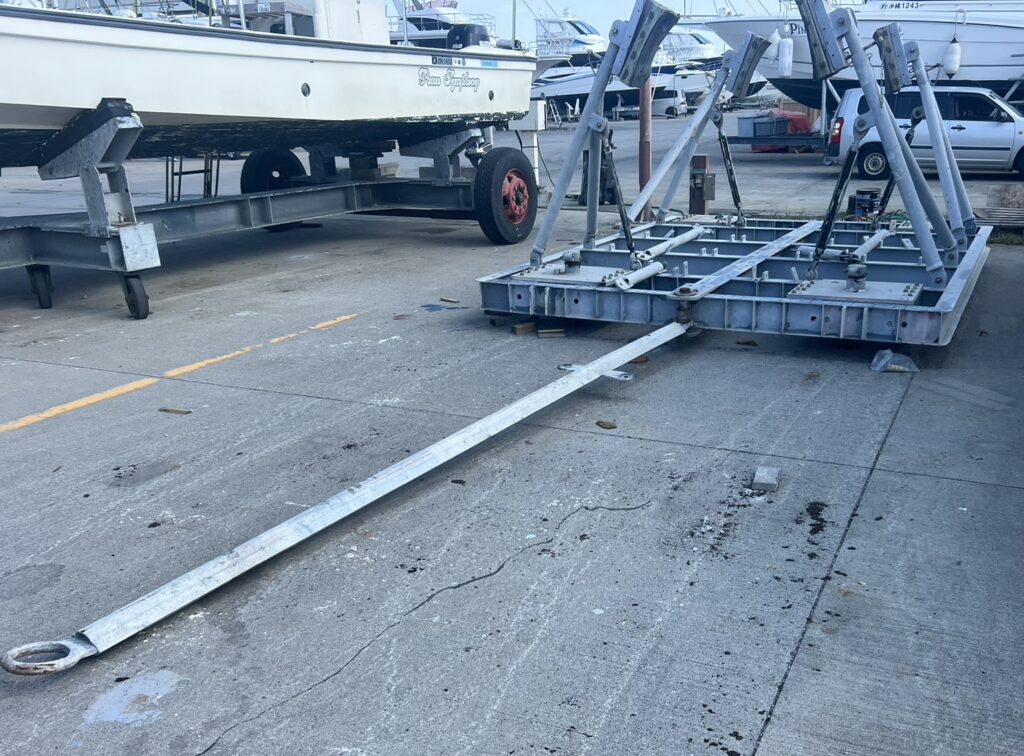 ヨット船台 38ft程度まで乗せられます。受皿式にも変更可能で変更パーツあります。